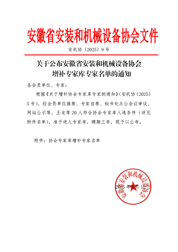 關于公布安徽省安裝和機械設備協(xié)會增補專家?guī)鞂<颐麊蔚耐ㄖ?/div>